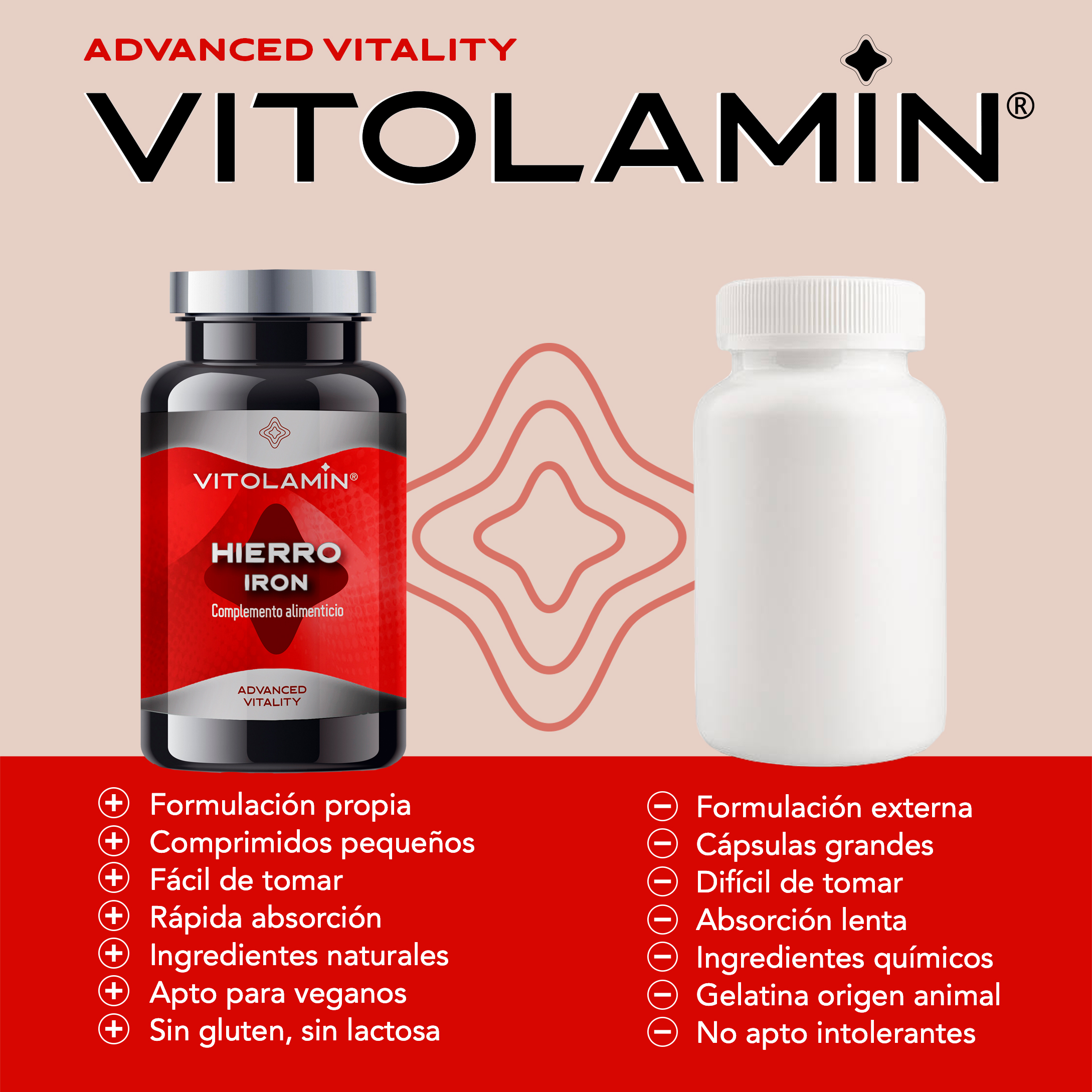 VITOLAMIN® HIERRO 180 comprimidos vegetarianos | El hierro contribuye al metabolismo energético y reduce el cansancio y la fatiga diarios.